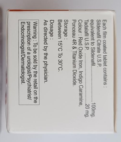 SIDALIST 120mg prodotto dalla casa farmaceutica New Pharmacy è una pillola con i due principi attivi insieme, il Sildenafil 100mg e il Tadalafil 20mg..